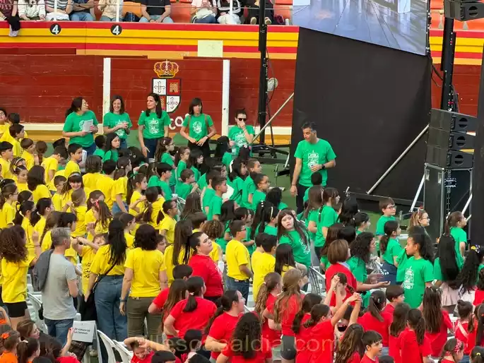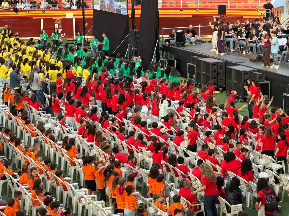 Más de 1.300 niños y niñas pertenecientes a la Escuela de Música de Illescas, los Colegios de Infantil y Primaria de Illescas: CEIP Clara Campoamor, CEIP Ilarcuris, CEIP La Constitución, CEIP Martín Chico, CEIP Libertad, CEIP El Greco, CEIP Rosa Chacel y C. Virgen de la Caridad y el Centro de Educación Especial Reino de Tule de Esquivias (centro invitado) han formado un coro muy especial y festivo que también ha sido acompañado por los padres y el público asistente.
