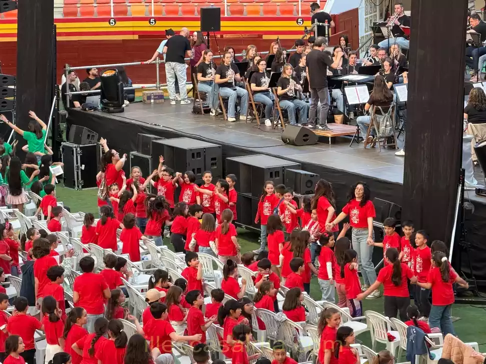 El alumnado de los diferentes centros educativos de la localidad de la Sagra se ha convertido en la tarde de hoy en protagonista de una actividad en la que los niños y niñas han cantado y bailado acompañados de la Banda de la Fundación Musical Manuel de Falla.