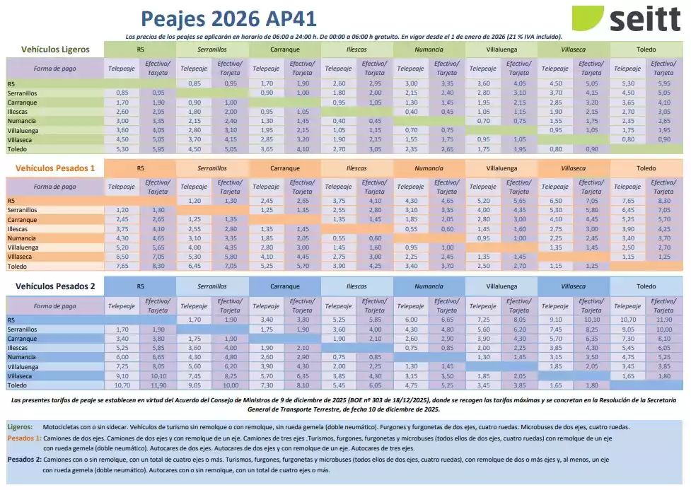 Subieron en 2025, ahora de nuevo a partir del 1 de Enero y además siguen eliminadas las bonificaciones que en su día existieron para usuarios recurrentes y que era una ventaja que tenían los que usaban esta vía para ir a trabajar y no «tragarse» como es habitual diariamente los atascos, accidentes e incidencias en la «ratonera» de la A-42 a su paso por Illescas.