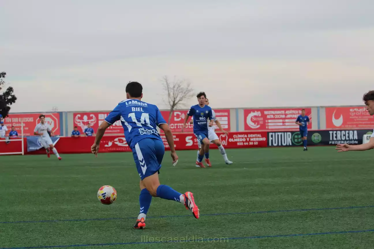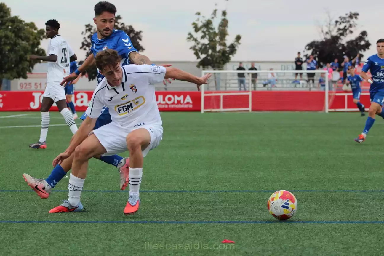 Roberto Encinas planteó un partido con sentido común, buscando sorprender a la defensa minera desde atrás con velocidad. Funcionó hasta el minuto 18, cuando Yacouba fue expulsado por roja directa tras un forcejeo. Con uno menos, los Illescanos se replegaron en un 4-4-1 más defensivo. El Calvo Sotelo intentó aprovechar la superioridad numérica, pero el Illescas se organizó bien y no permitió peligro. En la segunda mitad, pese a los cambios de Javi Sánchez, el Illescas se mantuvo firme y el partido terminó en empate, con el equipo minero sin muchas ideas y los blancos defendiendo con coraje.