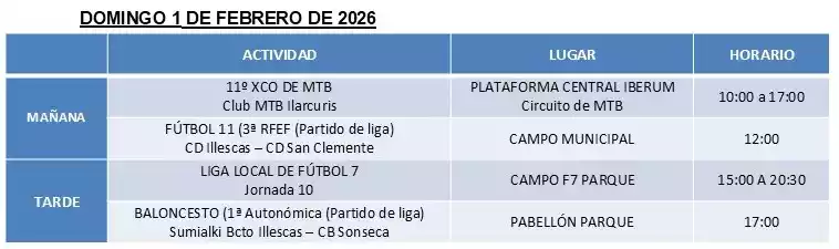 Actividades Deportivas días 30 y 31 de Enero y 2 de Febrero en  Illescas