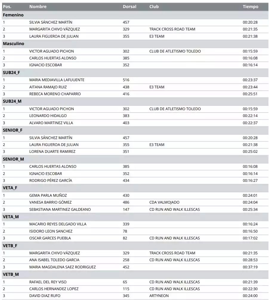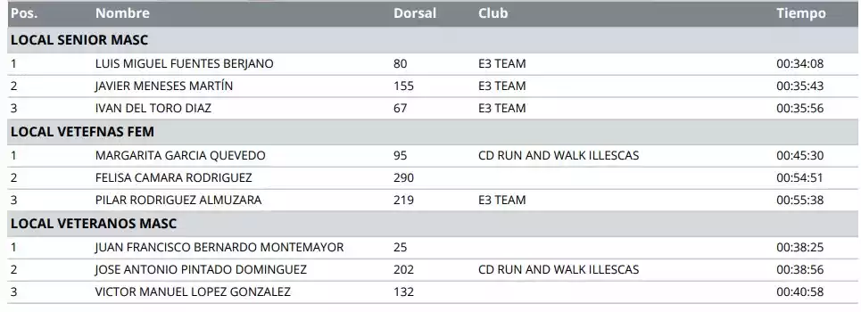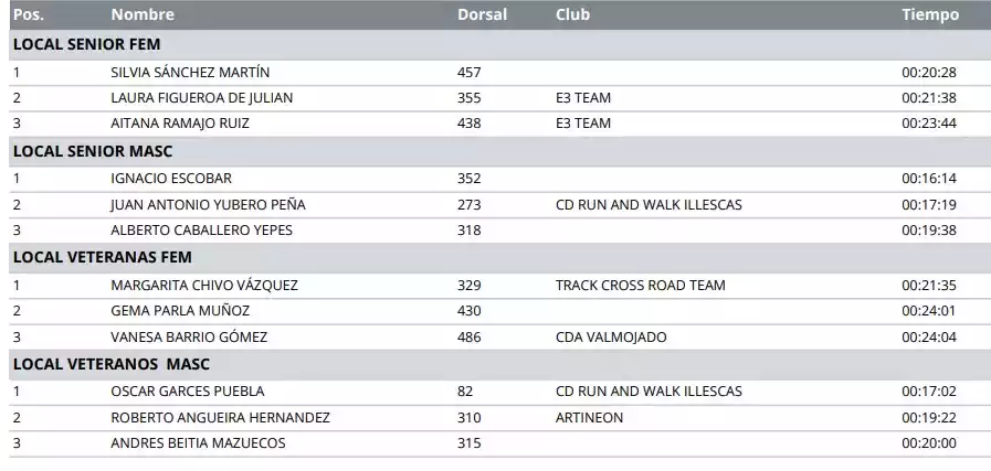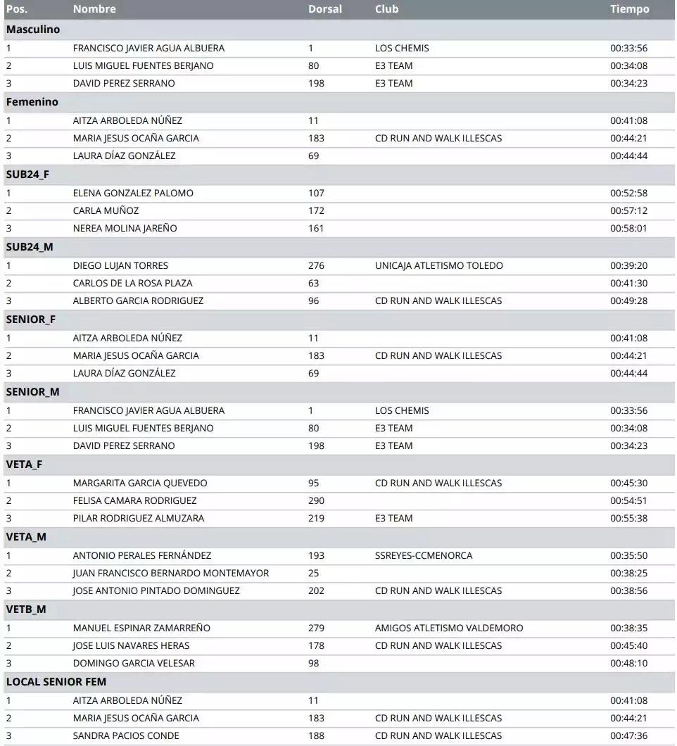Carrera Popular Villa de Illescas Edición XVIII. Clasificación
